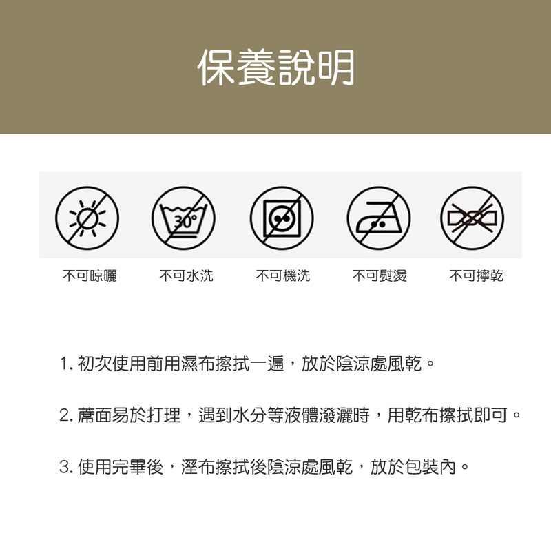 ※紙纖是天然材質,請勿使用過濕的布擦拭,不可直接水洗或太陽下曝曬。