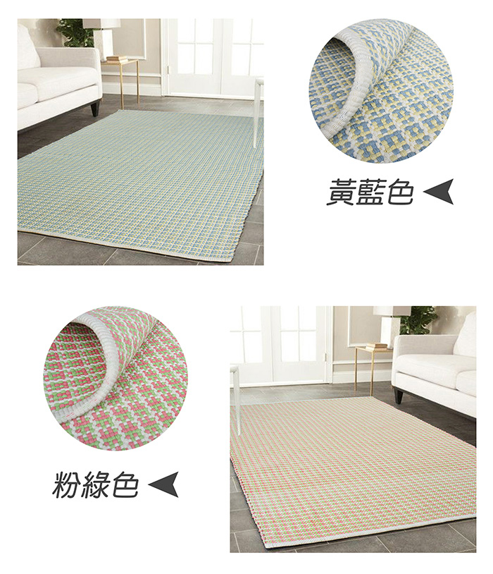純棉彩編地毯(140x200cm)-粉綠色