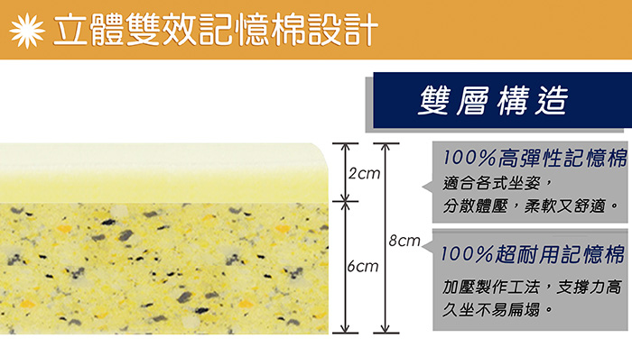 .材質–(表布)100%聚酯纖維、(內材)100%聚氨酯記憶棉