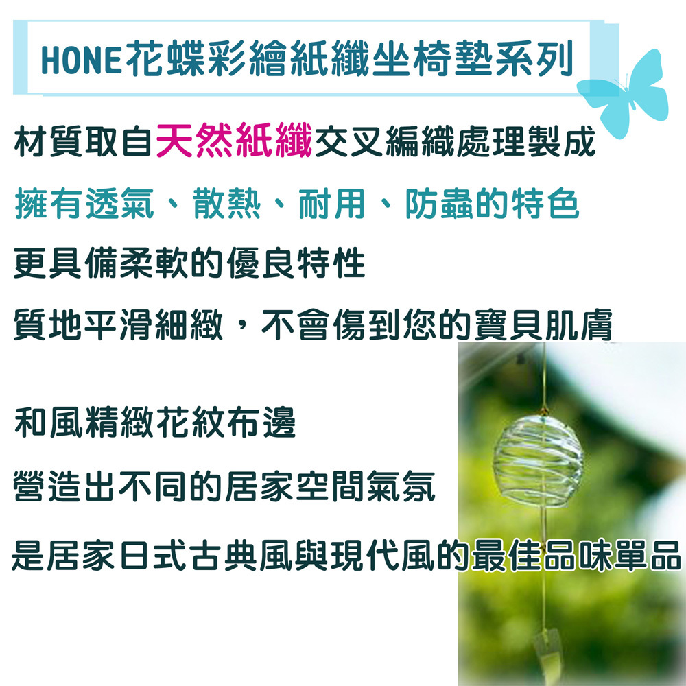 HONE花蝶彩繪紙纖記憶型餐椅墊(38x42x3cm)(共2色)