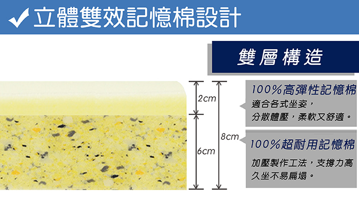 .材質–(表布)100%聚酯纖維、(內材)100%聚氨酯記憶棉