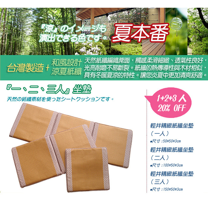輕井紙纖記憶型1+2+3人坐墊