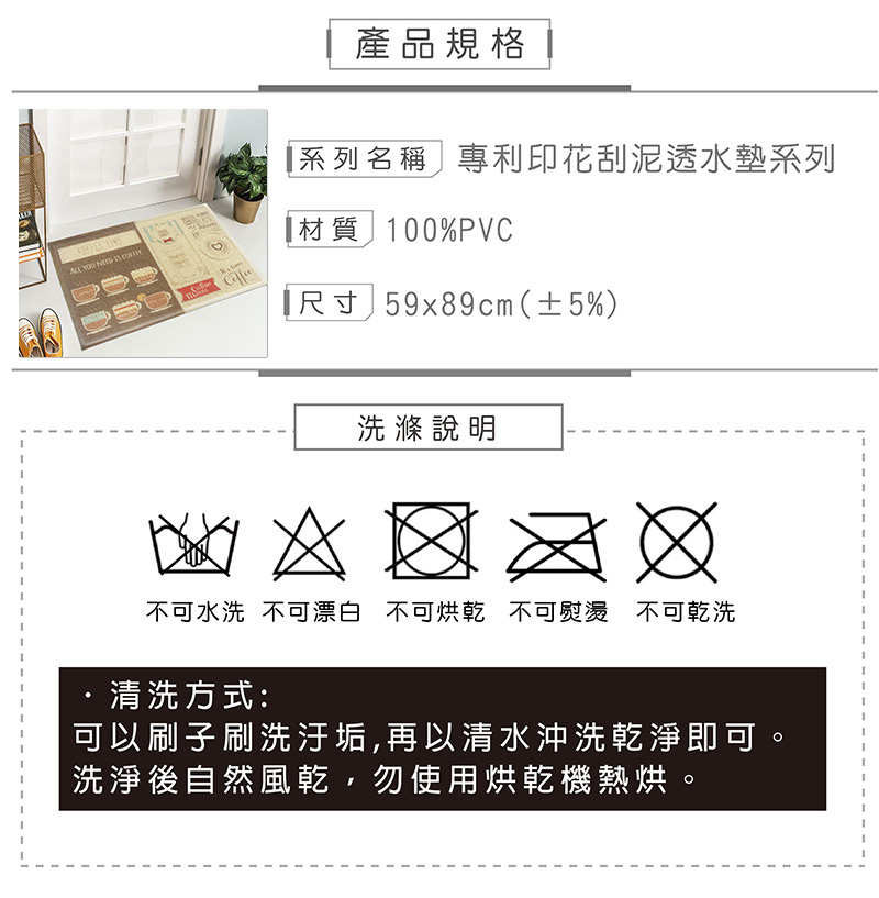 .清洗方式─可以刷子刷洗汙垢,再以清水沖洗乾淨即可。洗淨後自然風乾,勿使用烘乾機熱烘。
