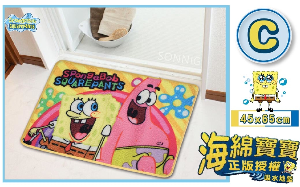 海綿寶寶Nickelodeon正版授權卡通踏墊(45x65cm)_B.SMILE
