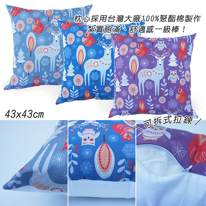 北歐風文創設計風格抱枕(43x43cm)-藍色鹿