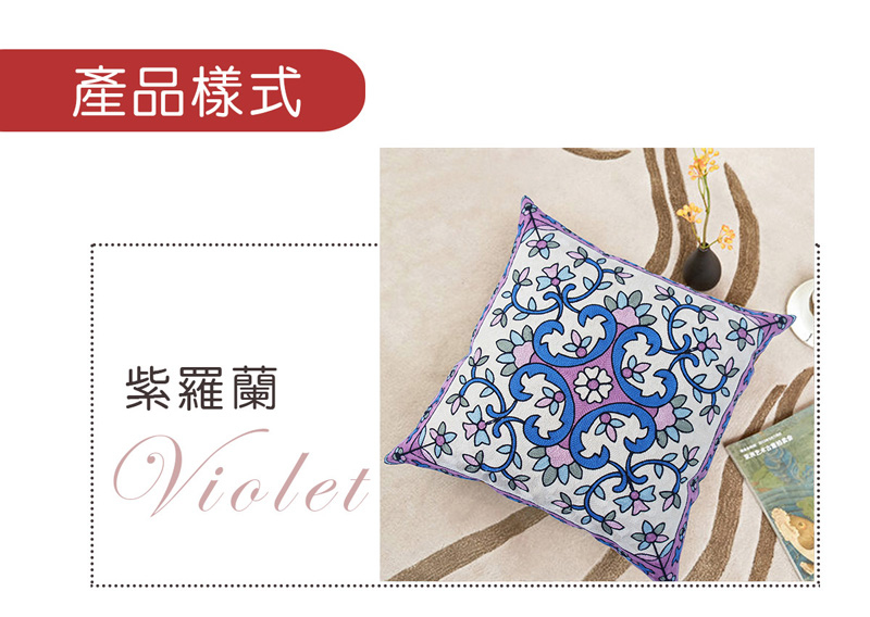 波希亞手工刺繡抱枕(45x45cm)_紫羅蘭