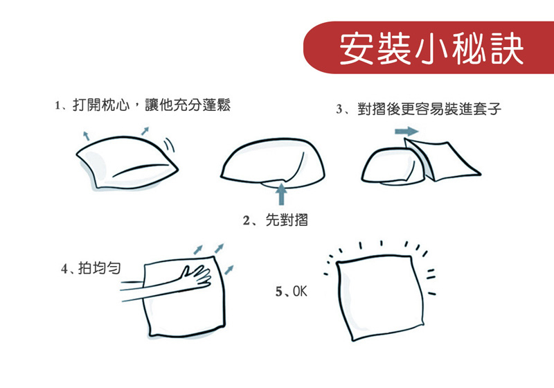 清潔保養方式–可水洗/不可烘乾/不可直接於陽光下曝曬/請勿使用漂白劑或酸鹼性清潔劑洗滌枕心不可水洗,使用一段時間建議定期更換,若枕心扁塌可以置於陽光下陰曬及稍作拍打,讓內部纖維活絡。