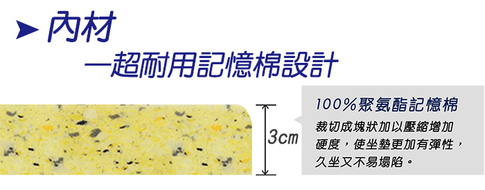 .材質–(表布)100%聚酯纖維、(內材)100%聚氨酯記憶棉