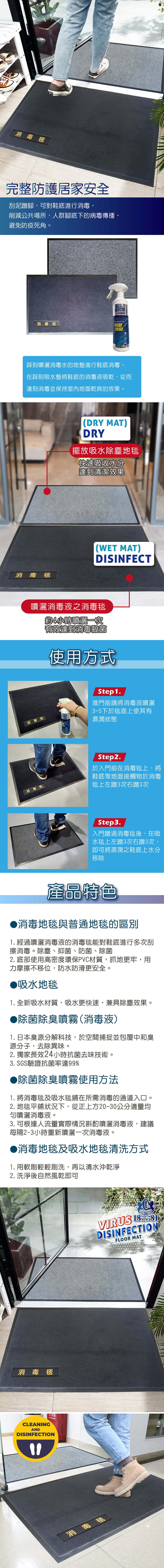 防疫消毒毯套組是今年主打的熱賣商品,在疫情期間深受各大政府及企業機關採用,產品內容有消毒毯、吸水毯以及台諾靈除菌除臭噴霧。傳染病學家Mary E. Schmidt認為,新冠肺炎病毒可以在鞋底、合成纖維內生存5天,因此不能忽略外出鞋可能夾帶病毒回家。這一個套組可以讓居家、商家出入多一個關卡,讓鞋底的壞菌髒污大部分消除,也讓防疫措施更加的完整,以下就為您詳細介紹: